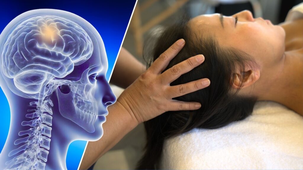 Release deep cranial tensions. It’s not a massage as such: with a featherweight touch, you’ll oxygenate the mental load.